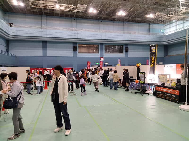 あいにく当日は雨模様となり、来場者数に懸念を抱いておりましたが、朝から開場前に列ができるほど盛況となりました。多くの方にブースにお立ち寄りいただき、ポータブル電源や感震ブレーカーに関心を示してくださる方も多くいらっしゃいました。